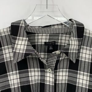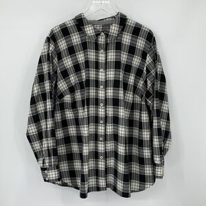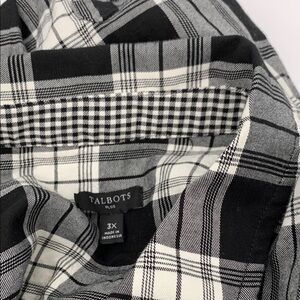 Talbots Plus button shirt top blouse cotton black white plaid check gingham 3X