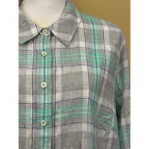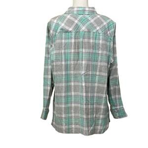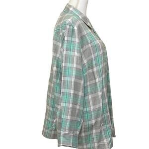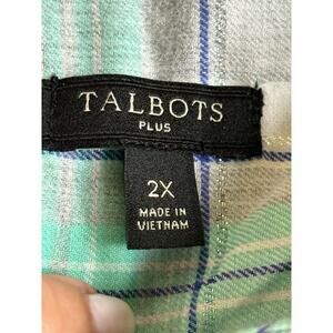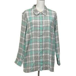 Talbots Plus green/gray/lurex brushed cotton plaid top, 2XL, utility, outdoors