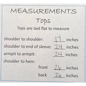 Clothing actual size can be different than the tag size because of washing or style/cut. Please see the measurements in the photos and compare to an item that fits you. All items are laid flat for measurements.