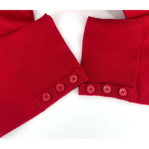 The women's Talbots Plus Christmas red long sleeve pullover sweater has three buttons at the bottom of both sleeves, as seen in images 5 and 7.