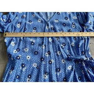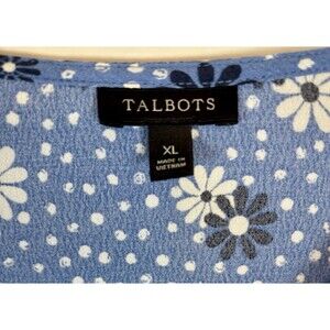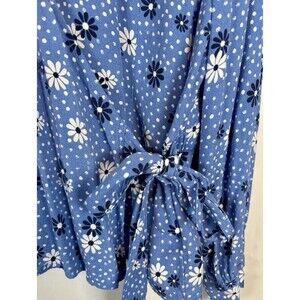 Talbots Poet Sleeve Blue Daisy Floral Faux Wrap Top Blouse Women's Size XL