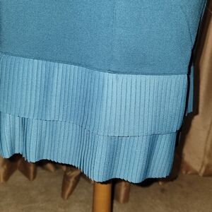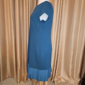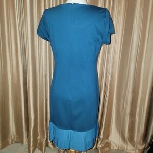 Talbots Pointe knit dress. Size 12 Petite. Short sleeved , tiered pleated hem. Teal blue. EUC