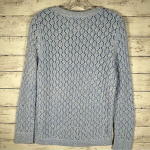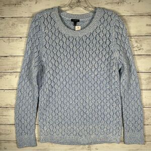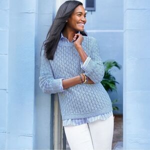 Talbots Pointelle Blue White Cotton Acrylic Sweater M NWT $89