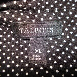 Talbots Polka Dot Blouse Shirt Lace Back Zip 3/4 Sleeve Women's Black & White XL