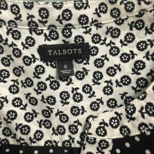 Excellent condition womens size Small sleeveless blouse from Talbots in a black and white polka dot design, v-neckline, lightweight polyester makes a great top for layering or pairing with your favorite slacks