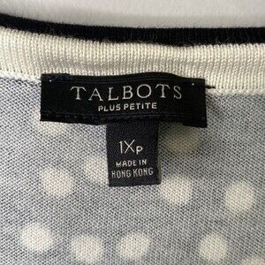 Talbots Polka Dot Button Down Cardigan Sweater 3/4 Sleeve Academia Office Soft