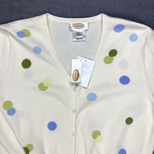 - Description: Talbots Polka Dot Cardigan Sweater S Ivory Knit Button Down Elegant Casual