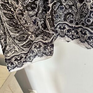 Talbots Poncho Top Womens Medium Portofino Paisley Sheer Navy Cotton Silk Light