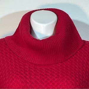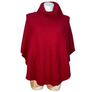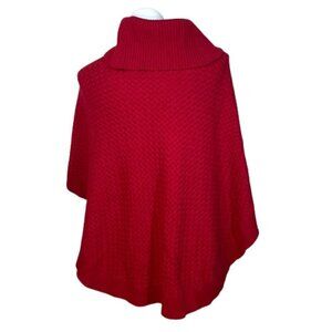 Get ready for spring with this beautiful red Talbots Poncho made with a soft nylon and lambs wool blend. Featuring a basket knit pattern, front kangaroo pocket, ribbed turtle neck, and rounded poncho shape, it's the perfect addition to your spring wardrobe. This size Large (L) poncho is a great choice for any casual occasion or outdoor event. Stay cozy and stylish this spring with this versatile and comfortable poncho!