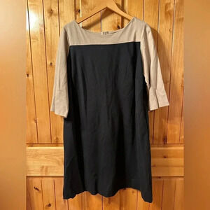 Talbots | Ponte Color Block Tan and Black Sheath Dress - Plus Size Petite