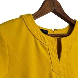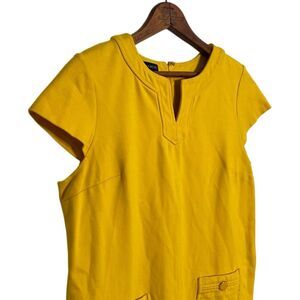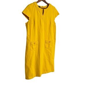Talbots Ponte Knit Split Neck Cap Sleeve Pockets Career Sheath Dress Yellow Size 8