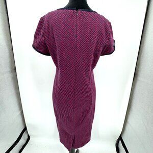 This Talbots Petites dress, crafted in a knit blend, captures an aesthetic perfect for a professional setting. With a front zip closure and short sleeves, it offers ease and style in one. The two-tone red and blue pattern provides an elegant touch, making it a distinctive piece for a career wardrobe.