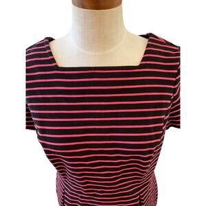 Talbots Textured pink stripe ponte knit dress, size 12P. Good preowned condition with square neckline, zippered back, cotton poly spandex blend