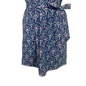 Talbots Poplin Belted Shirt Dress Short Sleeve Scalloped Floral Multi Size Large