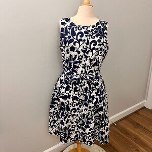 Talbots Poplin Fit & Flare Blue and White Tie Waist Dress - Jacobean 14P