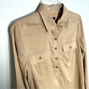 Talbots Popover Long Sleeve Blouse Tan Womens Small Neutral Minimalist Office