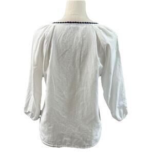 Talbots Popover Top Womens SP Linen Blend Embroidered Split Neck Tassels Boho