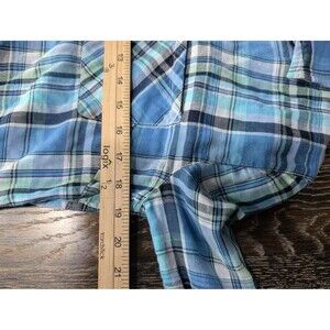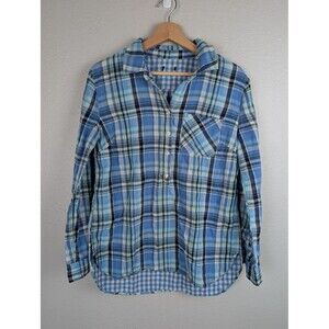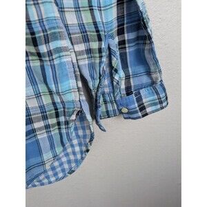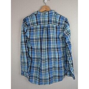 Plaid Shirt Womens Medium Blue Green Black Check Long Sleeve Button Cotton Casual