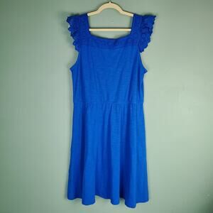 Talbots Port Blue Eyelet Slub Knit Fit & Flare Sleeveless Dress Size XL Petite or XLP