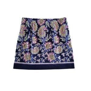 Lovely floral paisley printed skirt. Side zipper and hook & eye closure. Fully lined.