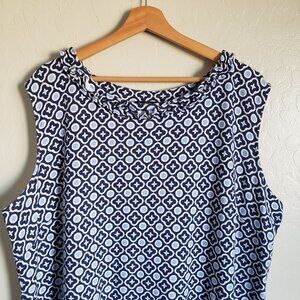 Talbots Printed Cotton Knit Shift Dress Knee Length Blue Size 3X Plus Sleeveless