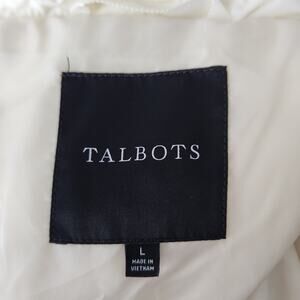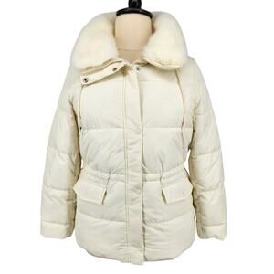 Talbots Puffer Jacket Removable Faux Fur Collar Quilted Zip Cream Size Large 12