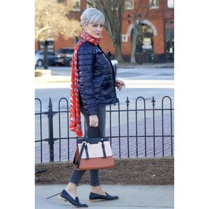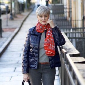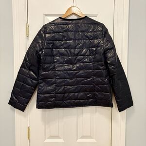 Talbots Puffer Jacket Size M Navy Blue Lightweight collarless Packable