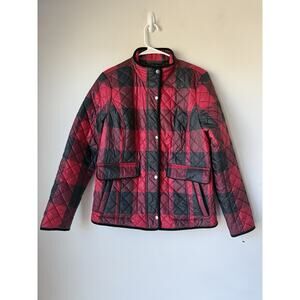Talbots Puffer Jacket Women's Womens XL Red Tartan Plaid Full Zip Snap Up Preppy