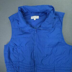 Talbots Puffer Vest Womens 1X Blue Down Feather Quilted Pockets Front Zip Hiking