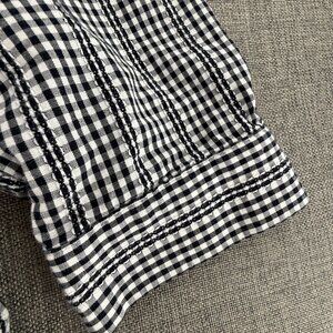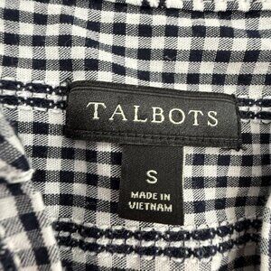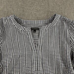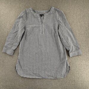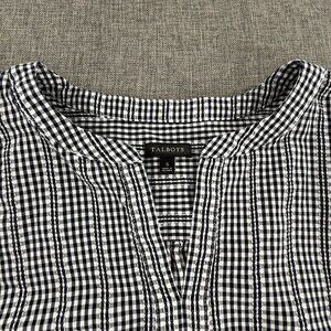 Talbots Pull Over Top Small Gingham Black White Split Neck 3/4th Sleeves Cotton