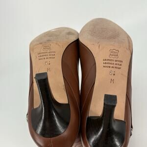 Talbots Pumps Womens 6.5 Carmel Brown Smooth Leather Pointed Toe Kitten Heel