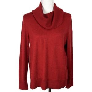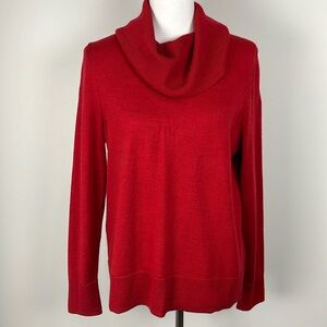 Talbots Pure 100% Merino Red Cowl Neck Sweater Size L Classic Preppy Capsule