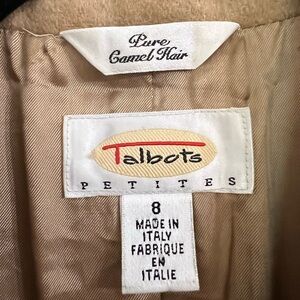 This Talbots blazer in a versatile tan hue is pure camel hair offering a timeless and professional silhouette. With its classic tailoring and elegant design, it's an ideal choice for business or casual settings. Some light signs of wear see photos otherwise in very good condition.