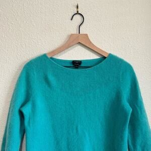 Talbots Pure Cashmere Sweater Sz Large Petite Turquoise Pullover Soft Minimal