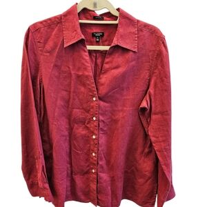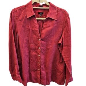Talbots Pure Irish Linen Button Down Shirt Solid Burgundy Red Womens