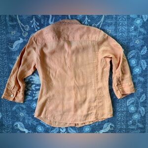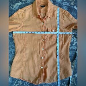 Chic button-down shirt by Talbots. Features a orange color. Front pocket and roll-up sleeves add style.
