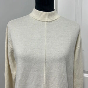 Talbots Pure Marino Wool Ivory oversized Long Sleeve Cowl Neck Sweater size Medium Ribbed Sleeve and Neck