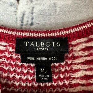 Talbots Pure Merino Wool Cardigan Red White Size Medium Christmas Winter Cozy