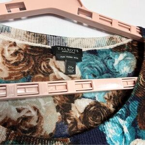 Talbots Pure Merino Wool Cardigan Sz 2XP Brown Blue Rose Button Romantic Floral
