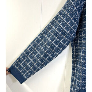 Talbots Pure Merino Wool V Neck Cardigan Sweater Size XLP Textured Plaid Blue