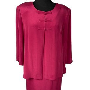 Talbots Pure Silk 2 Piece Wine Jacket and Sleeveless Sheath Maxi Dress S…