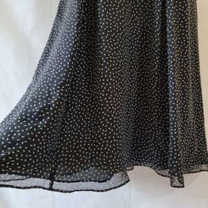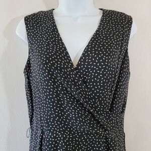 Talbots Pure Silk Black Tan All Over Print, Sleeveless, V-neck, Lined, Babydoll Midi Dress Sz 8 Whimsygoth