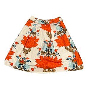Talbots Pure Silk Floral Pleated Midi Belted Skirt Multi ColorFlower Print Sz 8