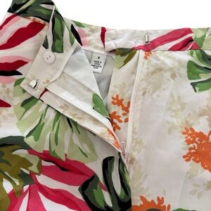 Talbots Pure Silk Pink Green Pants Leaf Tropical Print Lined Size 8