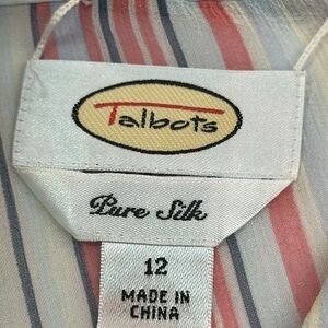 Talbots Pure Silk Striped Button-down Sheer Longsleeved Career Top Size 12