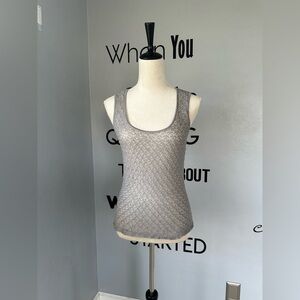 Talbots Pure Silk Women’s Knitted Tank Top Gray/ Cream Geometric Scoop, Size SP
