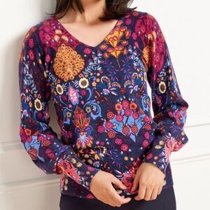 Talbots Pure Cashmere Balloon Sleeve Sweater Women’s Small Boho Colorful Floral