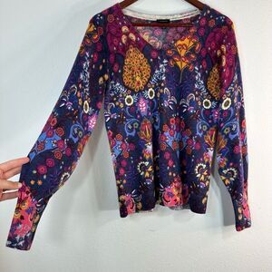 Item: Talbots Pure Cashmere Balloon Sleeve Sweater Women’s Small Boho Colorful Floral
