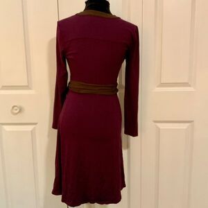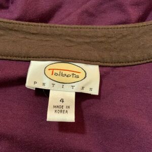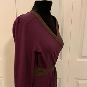 Talbots Purple Brown Belted Faux Wrap Jersey Knit Dress 4 Petite