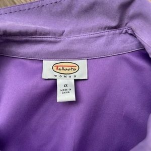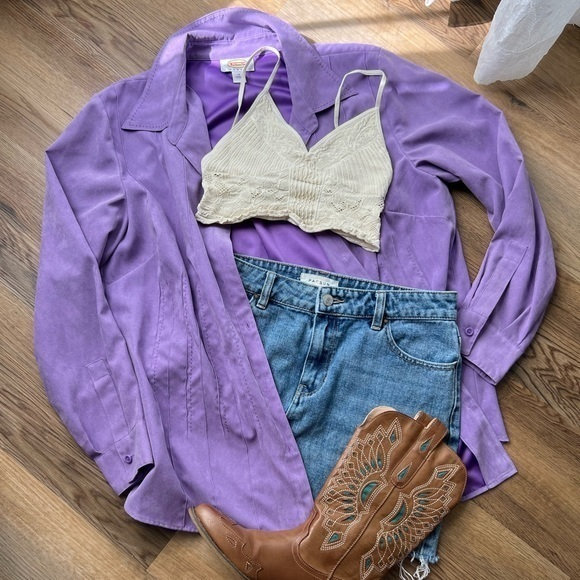 I am obsessed with this purple top! It’s an 1X but I style it as an oversized shacket! Gives me very western vibes because the material has like a faux leather feel but in a super comfy way! Would be cute with a little tank and shorts or jeans! I love the detail on it! I’m a medium/large and this fits perfectly oversized on me!